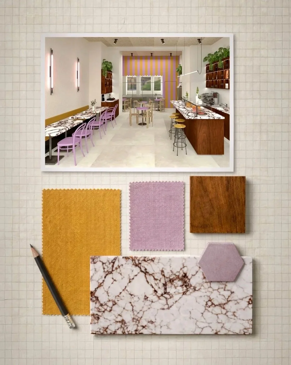 Attraverso moodboard, studio dei materiali e rendering sviluppiamo una visione chiara dello spazio, definendo atmosfera e linguaggio estetico del locale.